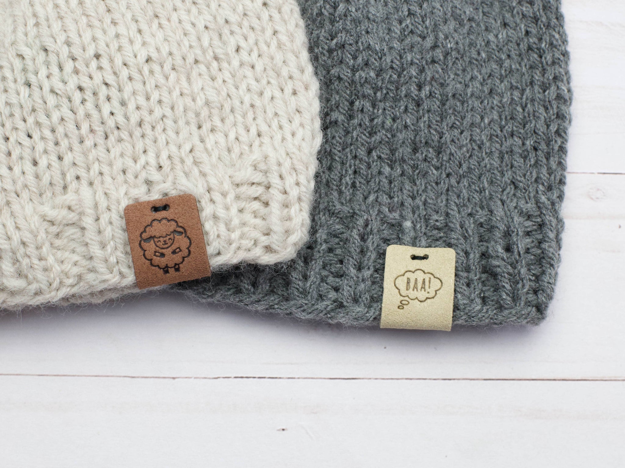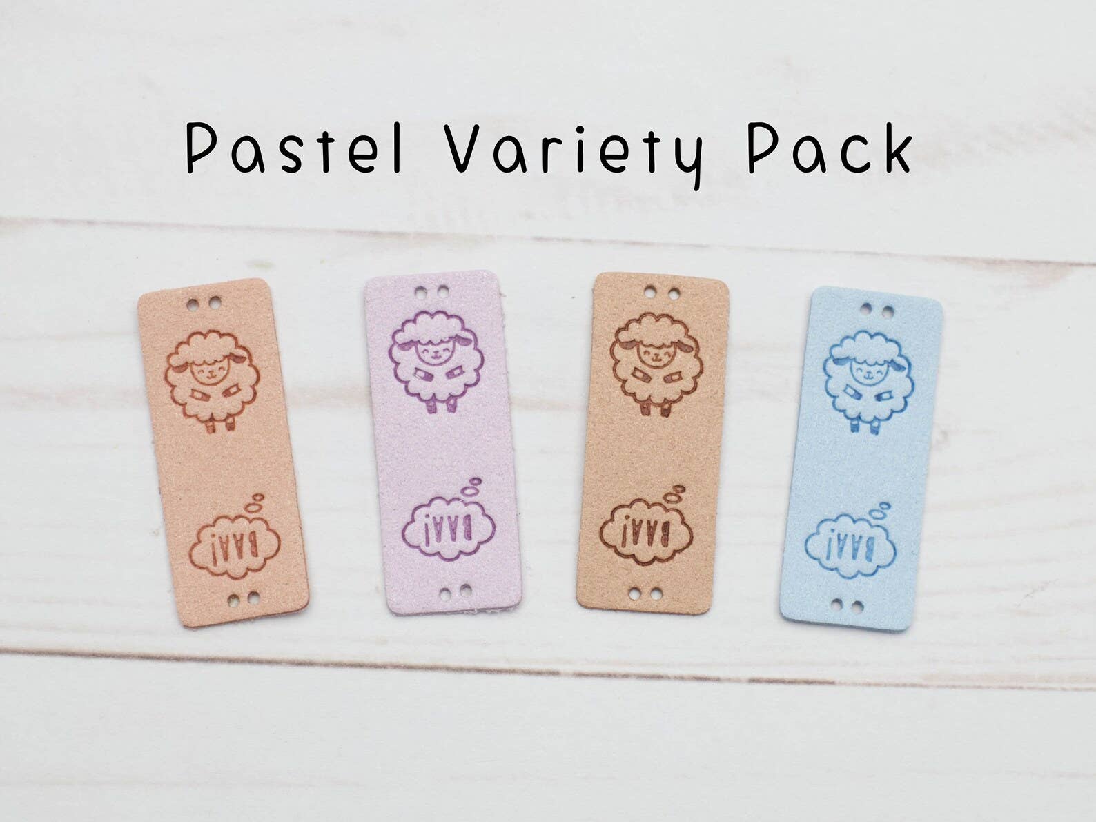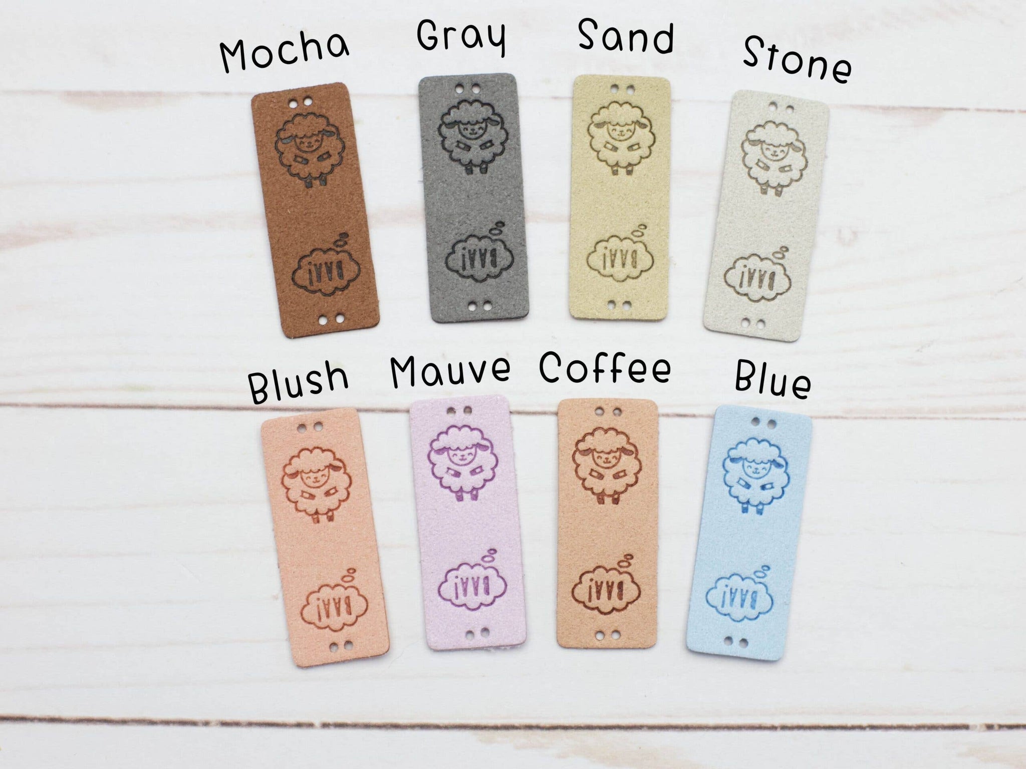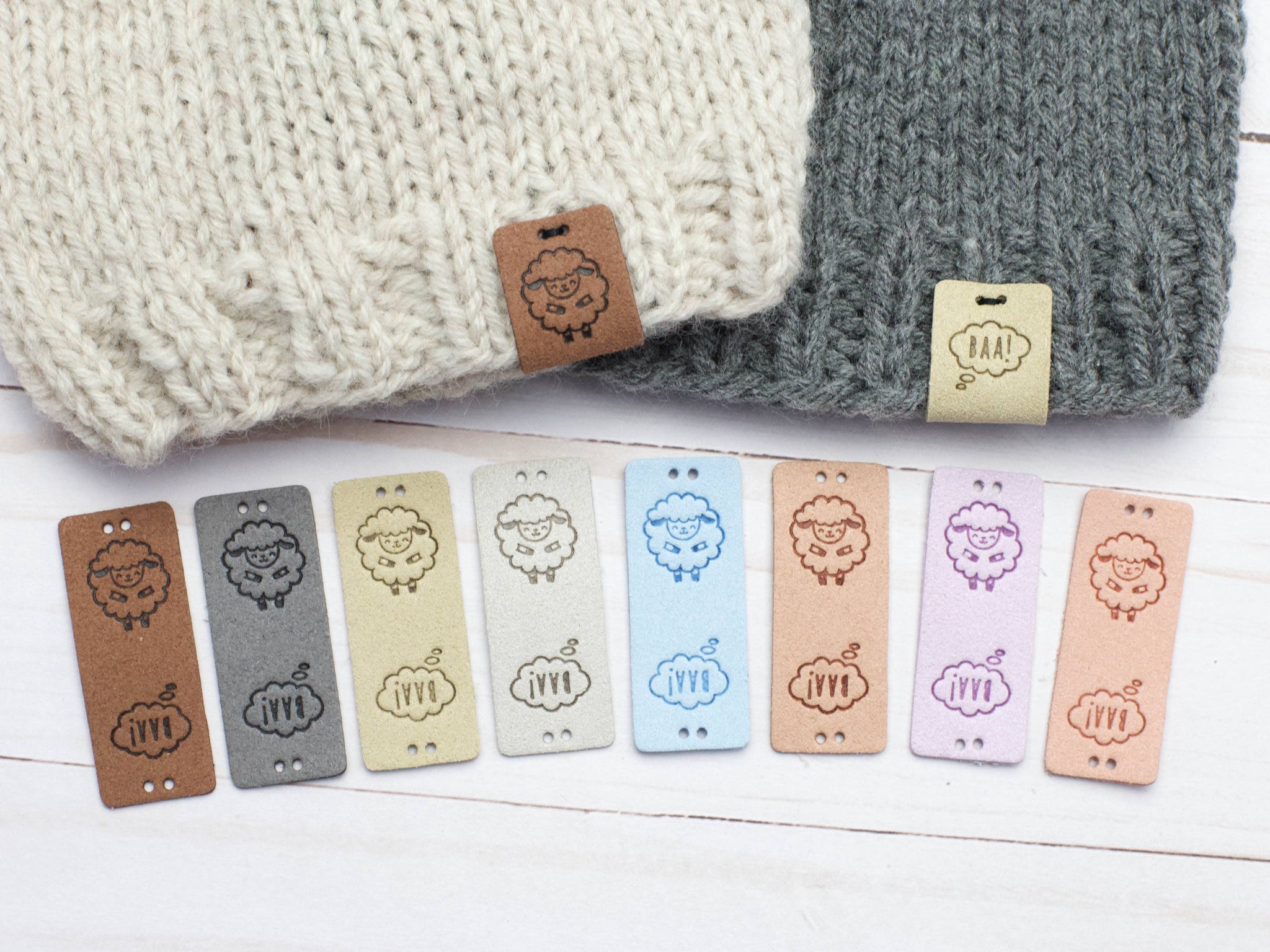 Baa Sheep Fold Over Tag Handmade Exclusive Heart Knitting Crochet Hats Personalized Neutral Pastel Faux Suede Leather Hats Notions Accessories Add a personalized touch to your handmade creation with our cute fold over tags. These are an exclusive Fox & Pine Stitches original design. The tags come in a pack of 4. Choose from one of our variety pack options. Measurements: 3/4" wide by 2 1/8" tall (unfolded). They can be attached with yarn or embroidery floss. The tags are machine washable and safe in the dryer.