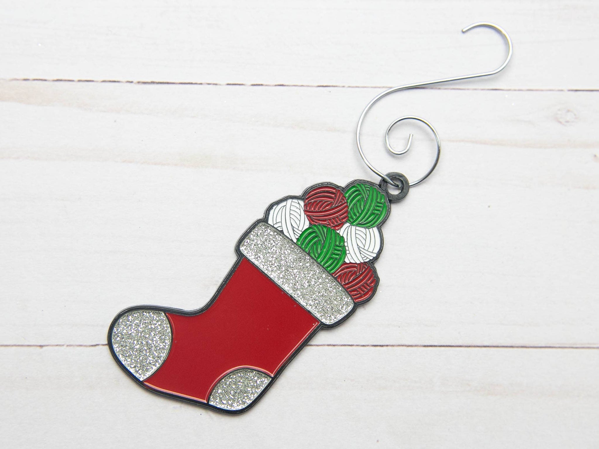 Our ornaments are a must have for all of us knitters this Christmas to dazzle our trees. The backside has the Fox & Pine Stitches logo and each ornament comes with the stylish silver ornament hanger shown in the photos.